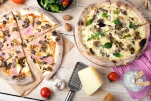 La pizza au jambon peut être enrichie par l’ajout d’autres ingrédients tels que des cœurs d’artichauts, des champignons ou des olives.